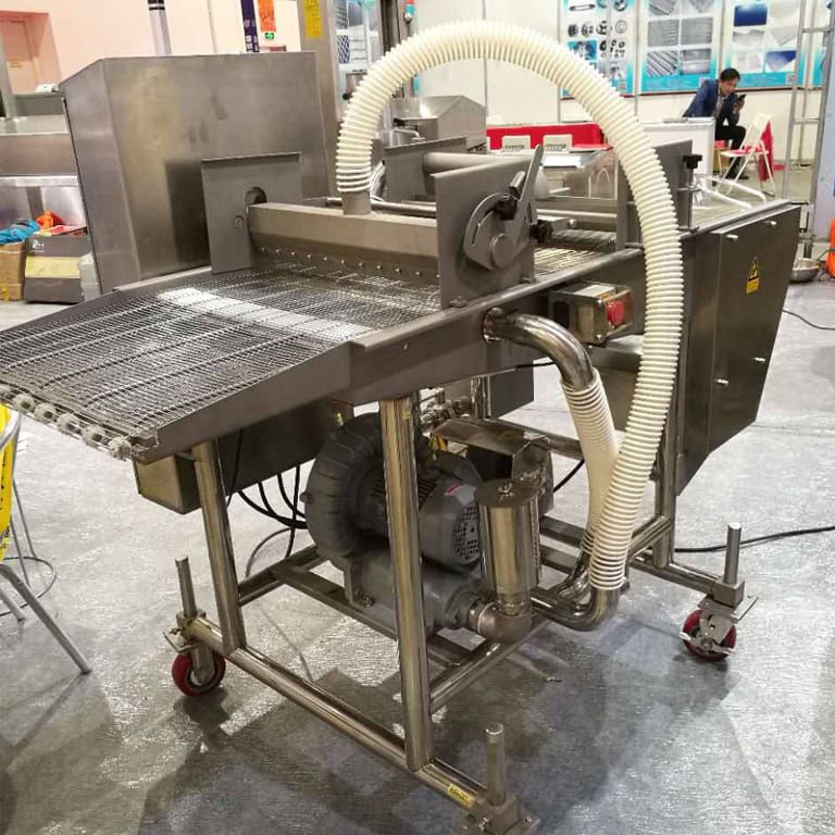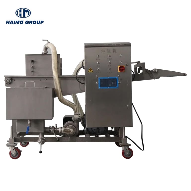 ◎ Battering machine can offer a even coating of the chicken (poultry), beef, meat, seafood etc with a two-layer batter curtain on the top and a batter under-bath. It is suitable for the processing procedure before breading and predusting. Can be precisely combined to a forming machine, a breading machine or a fryer to realize the continuous producing.