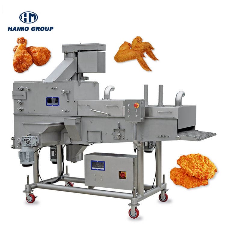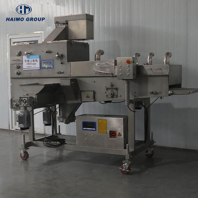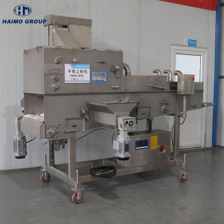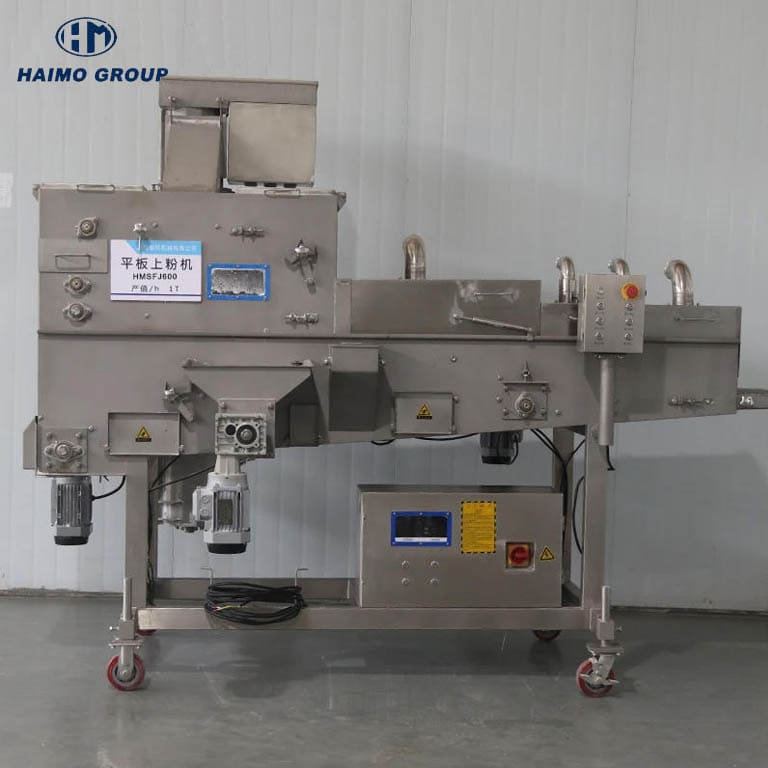 1. Predusting | HMSFJ Flouring Machine | Applies dry base layer for adhesion |