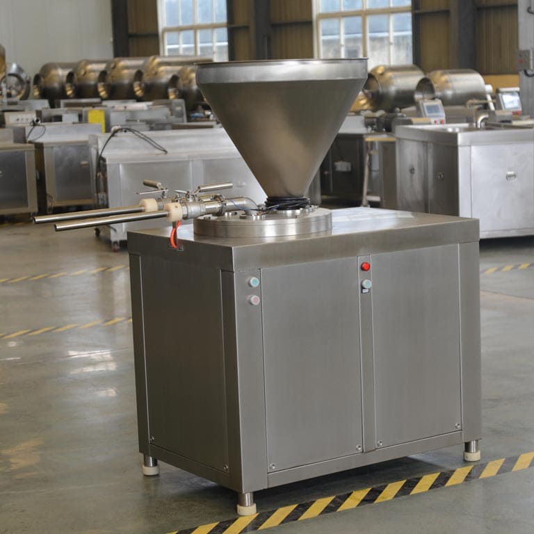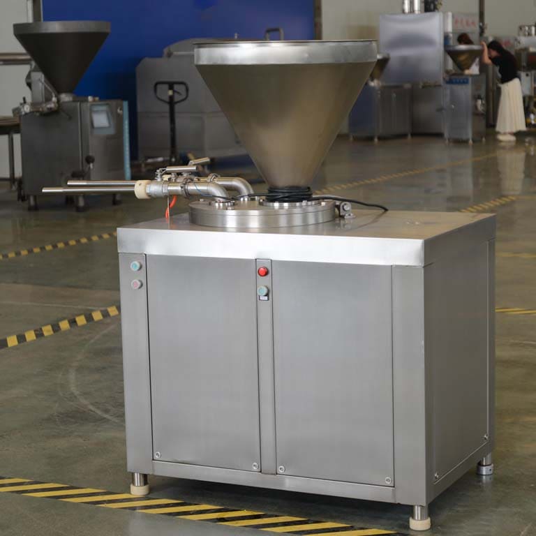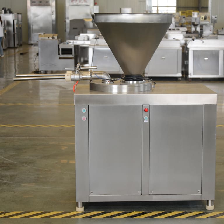 After adjusting the working pressure, the material inside the cylinder is pressurized and extruded by the hydraulic cylinder, ensuring stable and powerful output even for dense, chunky, or dry meat batters.